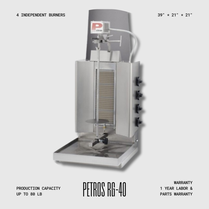 Petros RG-40 Gas Shawarma, Gyros, Doner-Kebab Machine – 40,000 BTUs